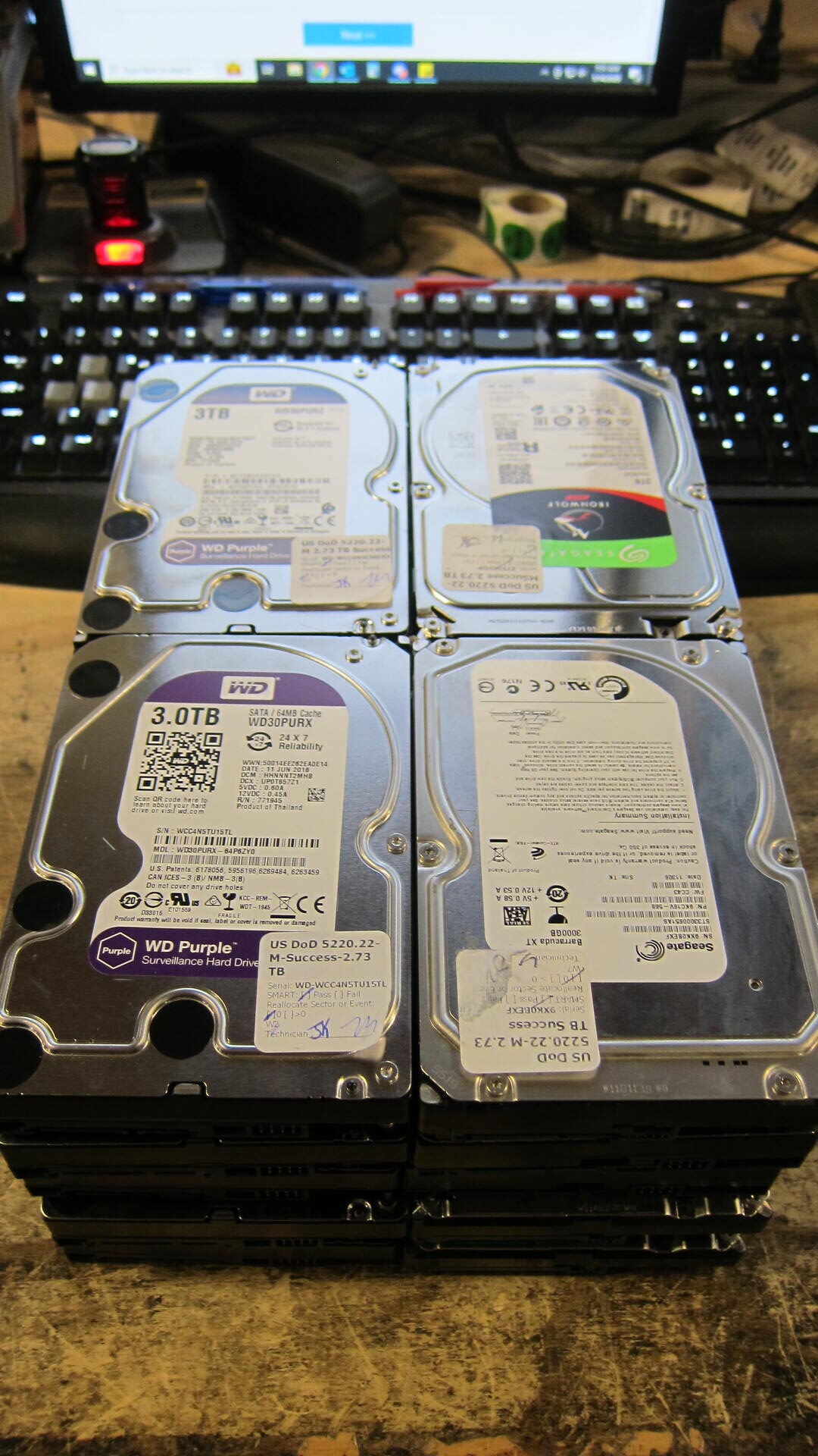 1 pallet of 480 3.5″ SATA hard drives. All Western Digital or Seagate Brand. All drives are wiped with the DoD 5220.22-M 3 pass. All drives are passed wiping with no error and no bad sector. No physical damage on the drive. No damage on the label.